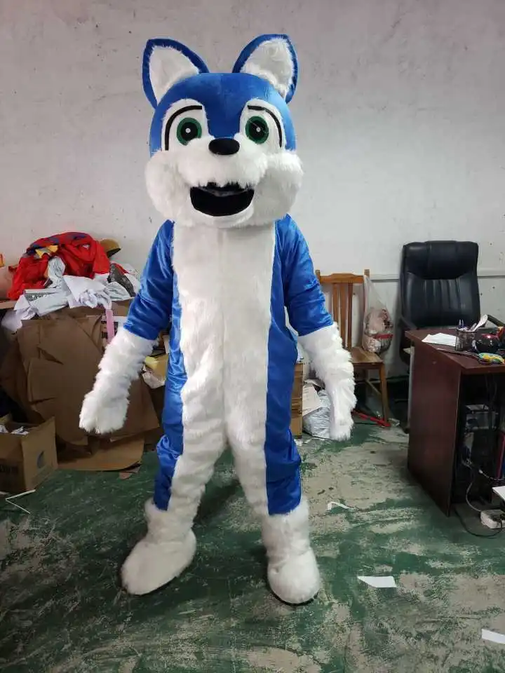 ๐(10%OFF) Goede Koop Halloween Lange Bont Blauw Husky Wolf Hond Fursuit Mascotte Kostuum Suits Vos Cosplay Party Game Fancy Dress Volwassen Grootte Xmas Kleding Goedkoop