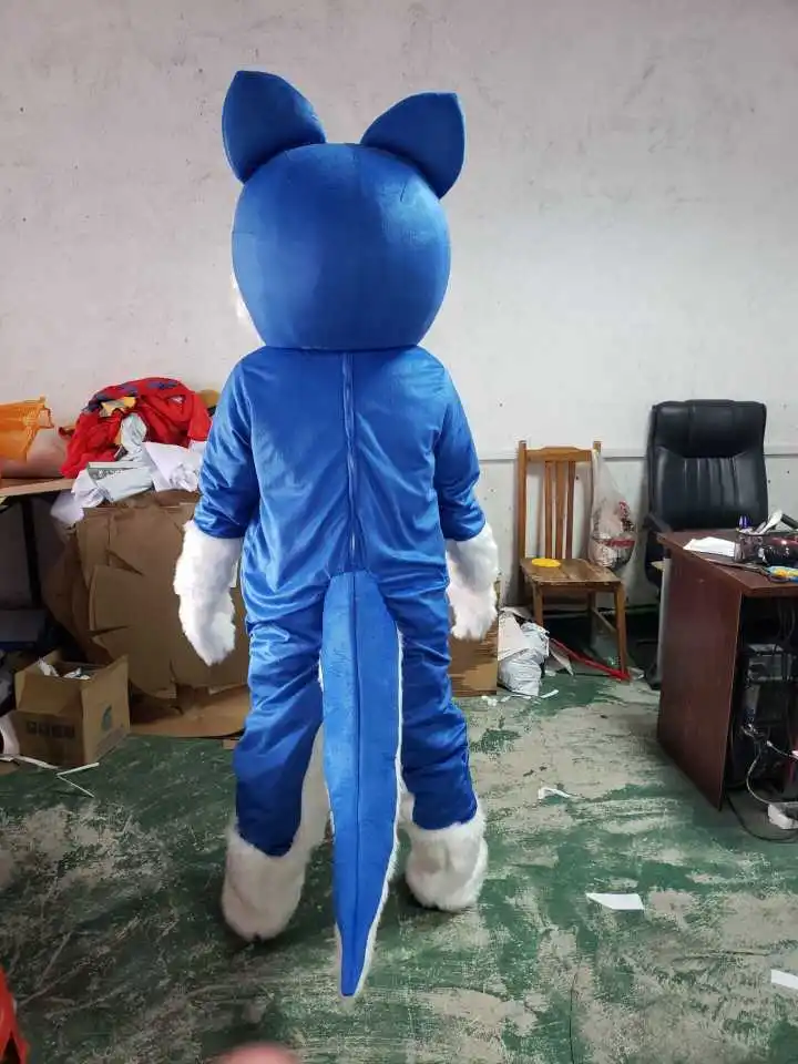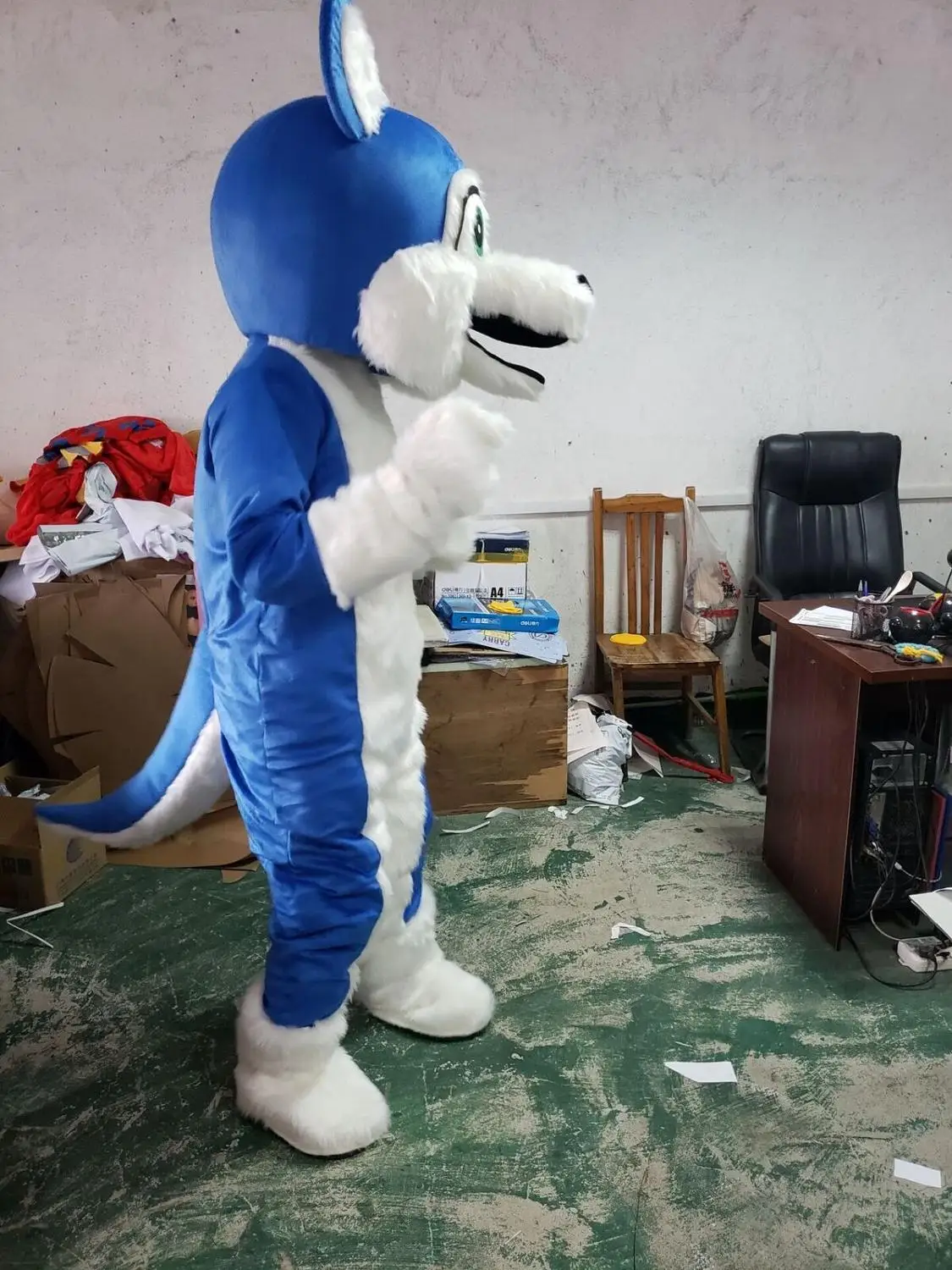 Product Name: Halloween Lange Bont Blauw Husky Wolf Hond Fursuit Mascotte Kostuum Suits Vos Cosplay Party Game Fancy Dress Volwassen Grootte Xmas Kleding