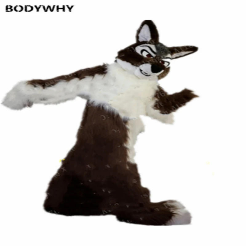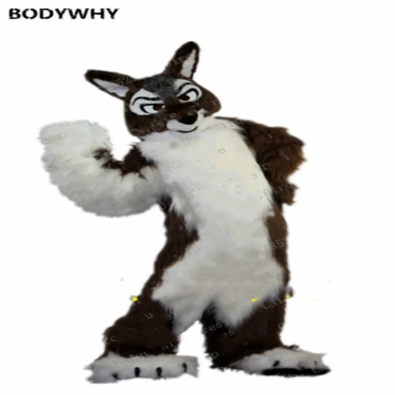 Product Name: Lange Bont Husky Hond Vos Wolf Fursuit Bruin Mascotte Kostuum Furry Cosplay Jurk Voor Birthday Party Halloween Kerst Ad Opening