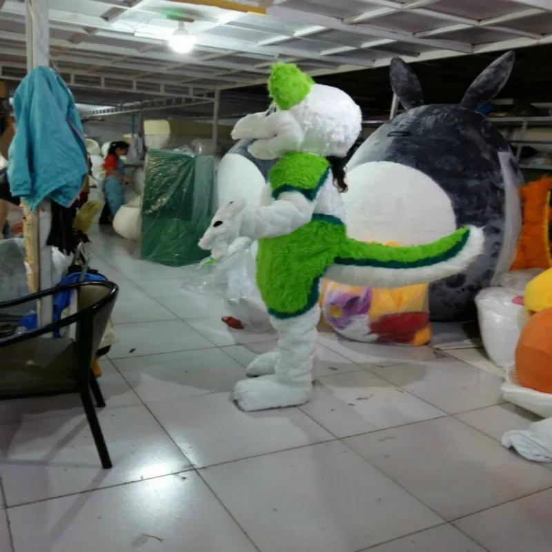 Product Name: Halloween Lange Bont Groen Husky Hond Wolf Fox Mascotte Kostuum Fursuit Kostuums Cosplay Party Game Dress Volwassen Grootte Xmas Pasen Nieuwe