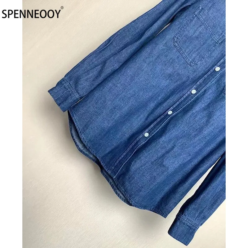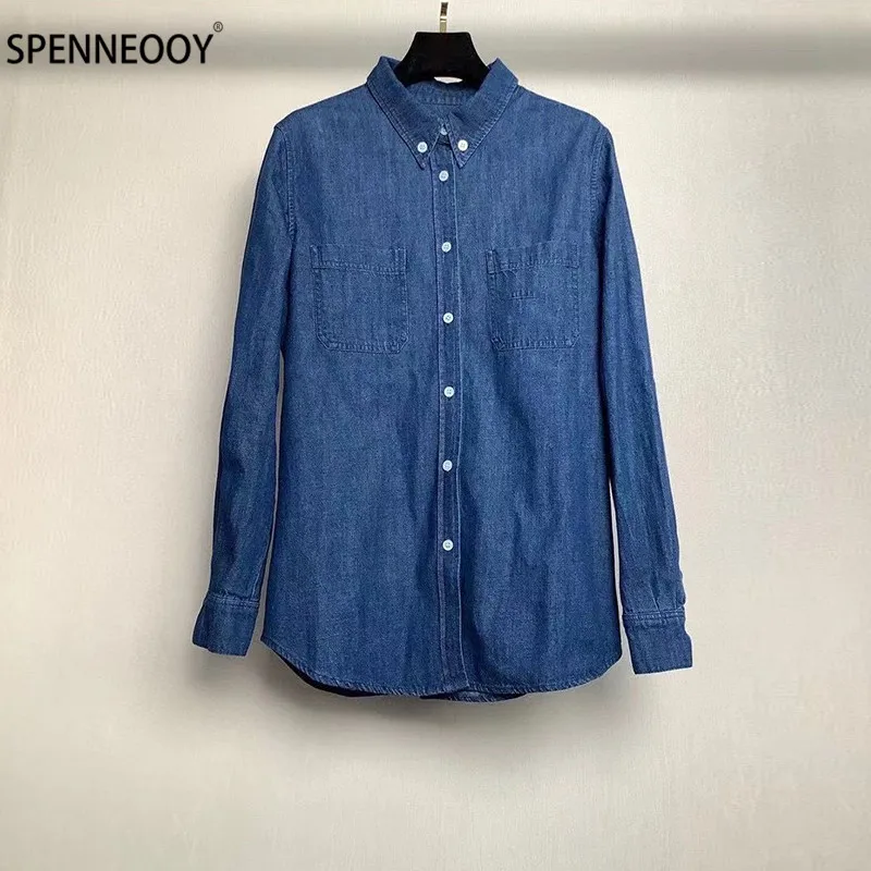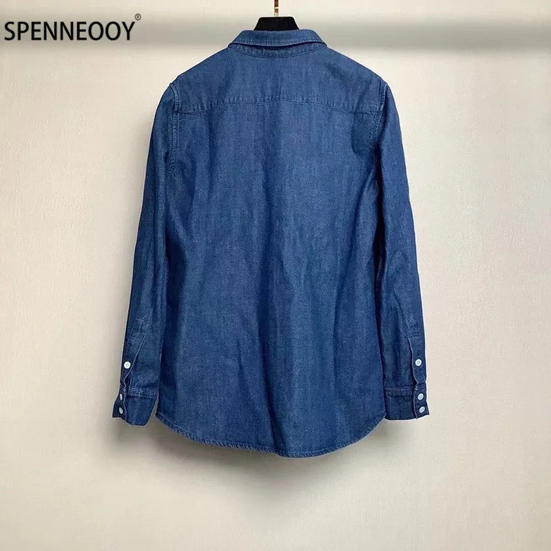 Product Name: Spennymoor 2021 Nieuwe Designer Merk Zomer Borduren Katoen Denim Blouse Shirt Vrouwen Lange Mouw Mode Toevallige Blouses