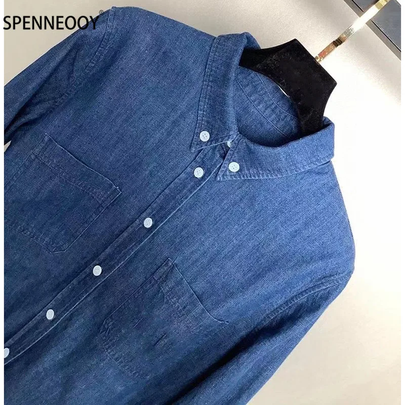 Special Offer Spennymoor 2021 Nieuwe Designer Merk Zomer Borduren Katoen Denim Blouse Shirt Vrouwen Lange Mouw Mode Toevallige Blouses Discount 20% Today!