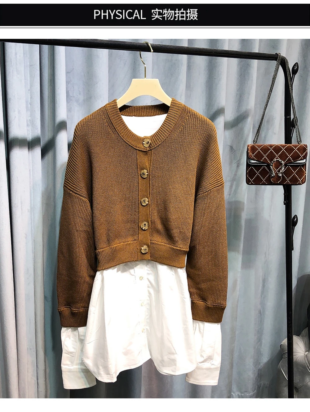 Product Name: 2020 Herfst Nieuwe Trui Jas Franse Minimalistische Designer Gebreide Vest Patchwork Overhemd Nep Tweedelige Vest