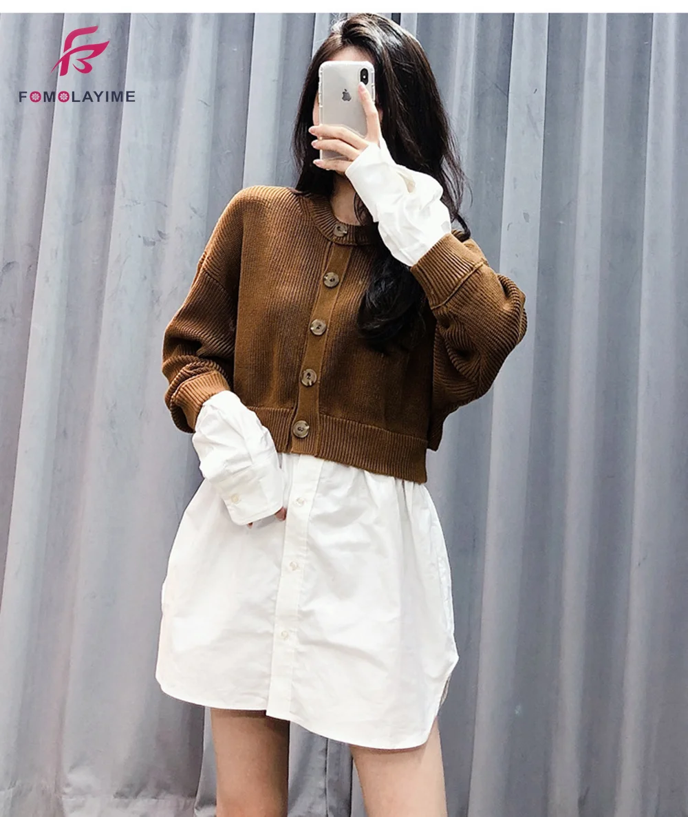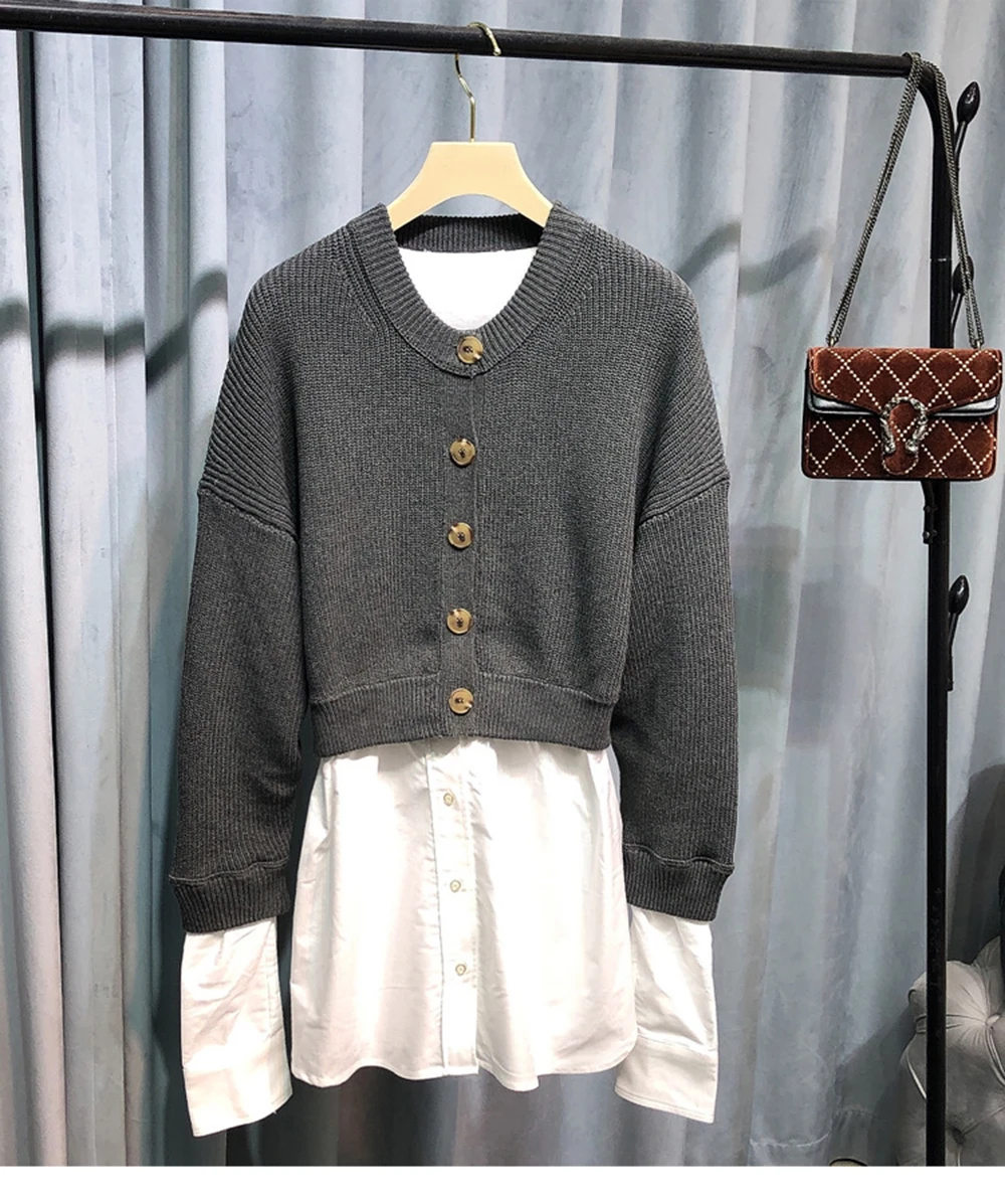 🕝(OFF) Goede Kopen 2020 Herfst Nieuwe Trui Jas Franse Minimalistische Designer Gebreide Vest Patchwork Overhemd Nep Tweedelige Goedkoop