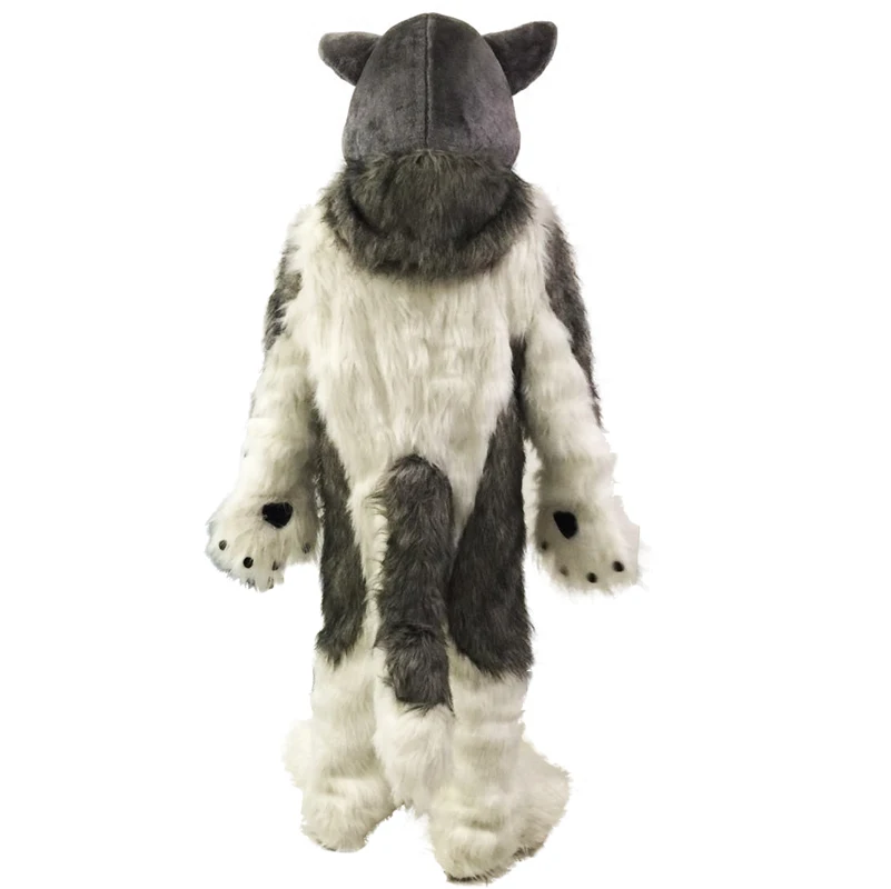 Product Name: Halloween Grijze Wolf Vos Husky Hond Fursuit Mascotte Kostuum Kostuums Cosplay Party Game Jurk Outfits Carnaval Xmas Pasen Volwassen Grootte