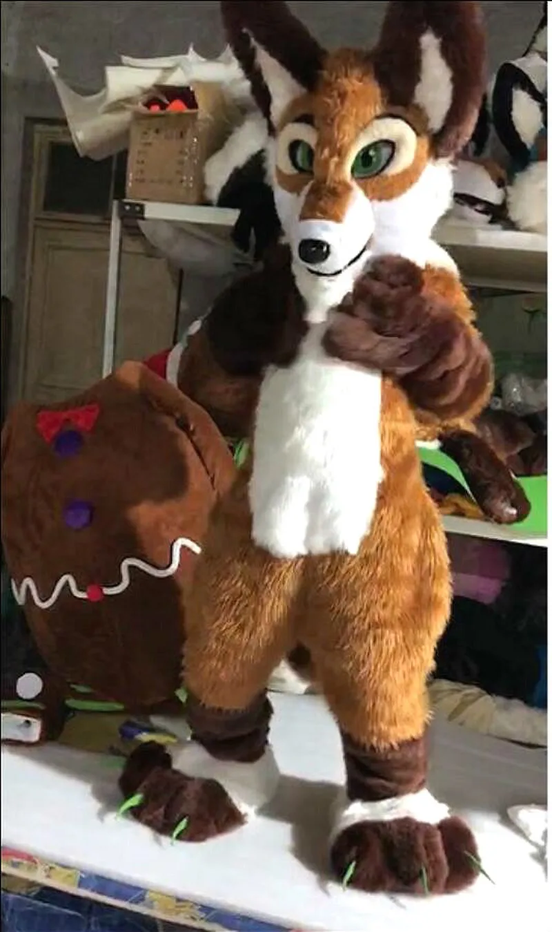 ๐(50%OFF) Beste Koop Nieuwe Bruine Lange Bont Wolf Hond Fursuit Mascotte Kostuum Halloween Outdoor Party Animal Cosplay Fancy Dress Unisex Adult Kid Outfit Goedkoop