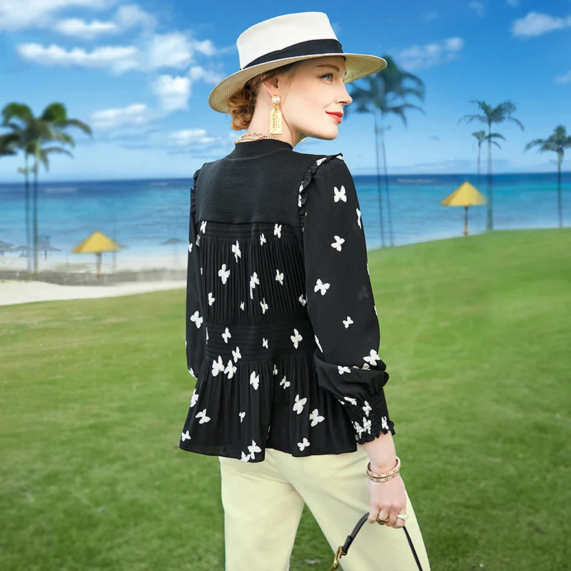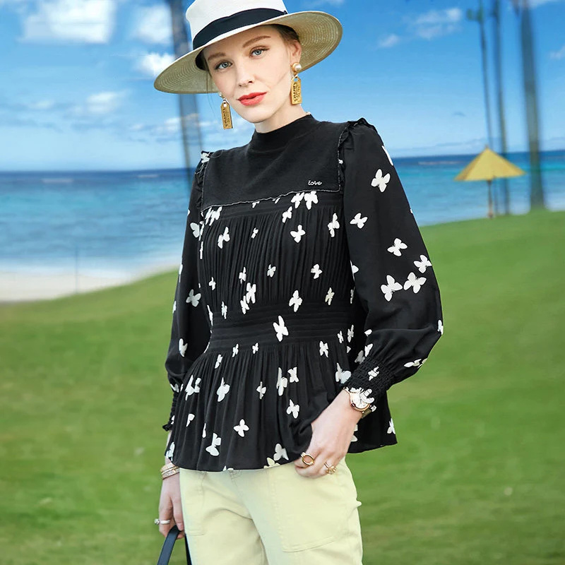 ☀️(28%OFF) Kopen Goedkoop Lente Nieuwe Street Style Breien Gesplitst Ontwerp Shirt Dames Mode Print Lange Mouwen Elastische Taille Top S XL Prijs