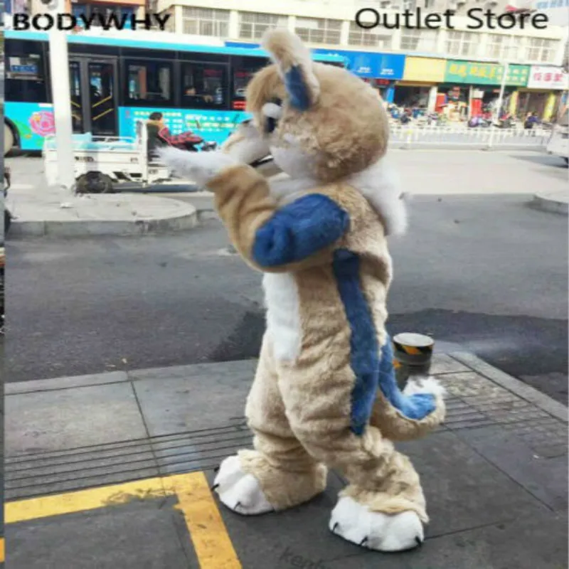 Special Offer Beige Lange Bont Husky Wolf Vos Hond Mascotte Kostuum Cosplay Outfit Party Fursuit Cartoon Jurk Carnaval Halloween Xmas Ad Kleding Discount 51% Today!