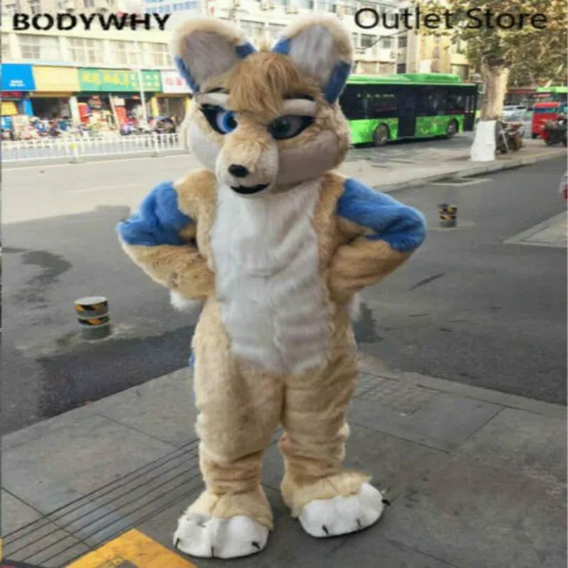 Special Offer Beige Lange Bont Husky Wolf Vos Hond Mascotte Kostuum Cosplay Outfit Party Fursuit Cartoon Jurk Carnaval Halloween Xmas Ad Kleding Discount 51% Today!