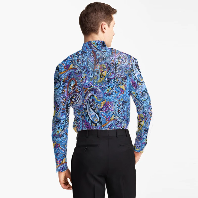 Special Offer 2018 Nieuwe Katoenen Kleurrijke Blauw Paisley Mannelijke Casual Mode Designer Shirt,man Custom Tailor Cut Bespoke Mtm Jurk Blouse Discount 0% Today!