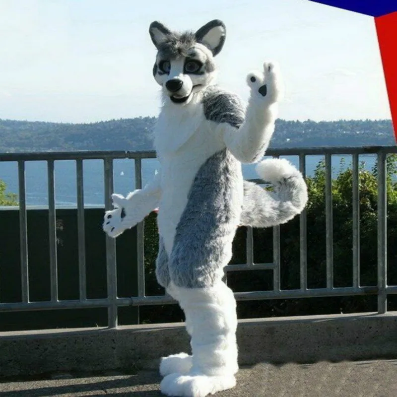 🔻(11%OFF) Kopen Goedkoop Wolf Hond Husky Mascotte Kostuum Cosplay Party Game Dress Outfit Halloween Volwassenen Maat Fursuit Karakter Xmas Pasen Ad Kleding Prijs