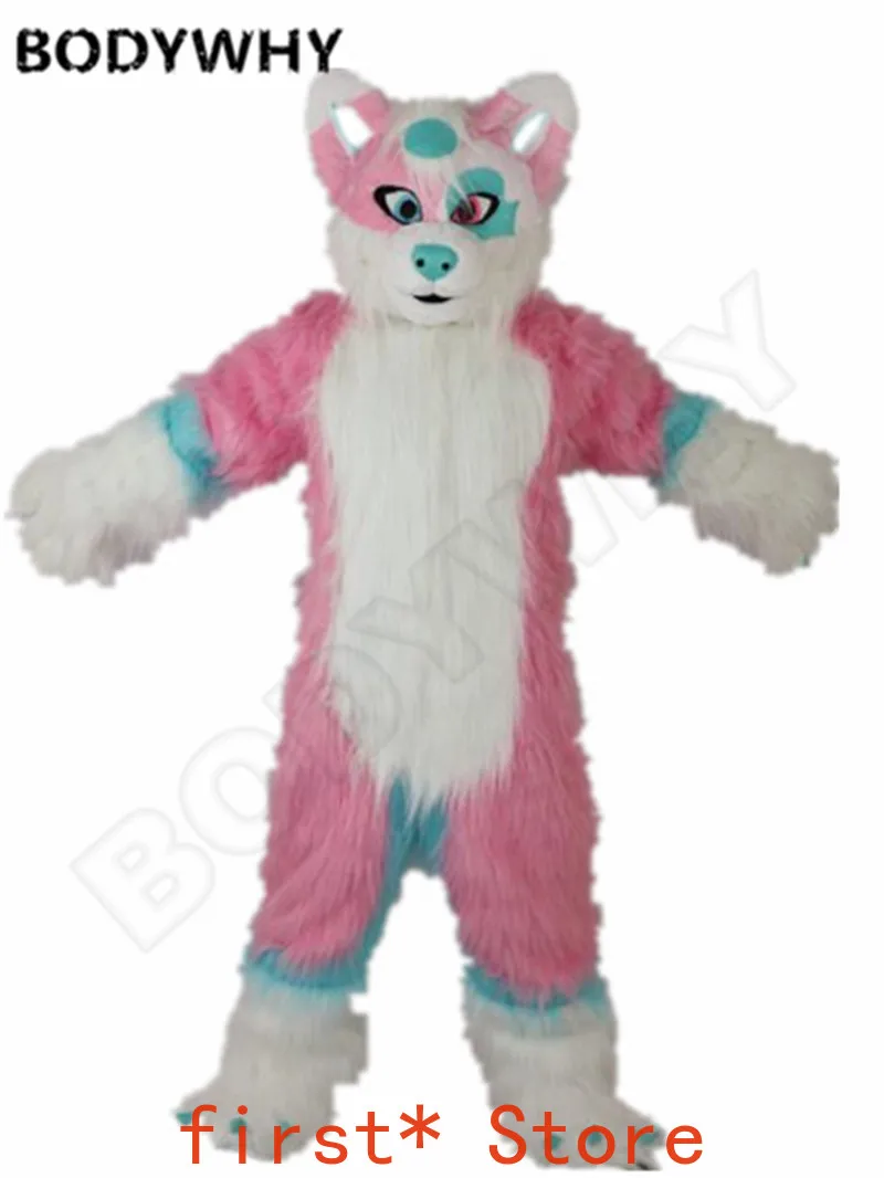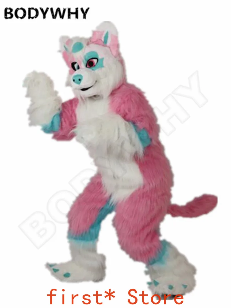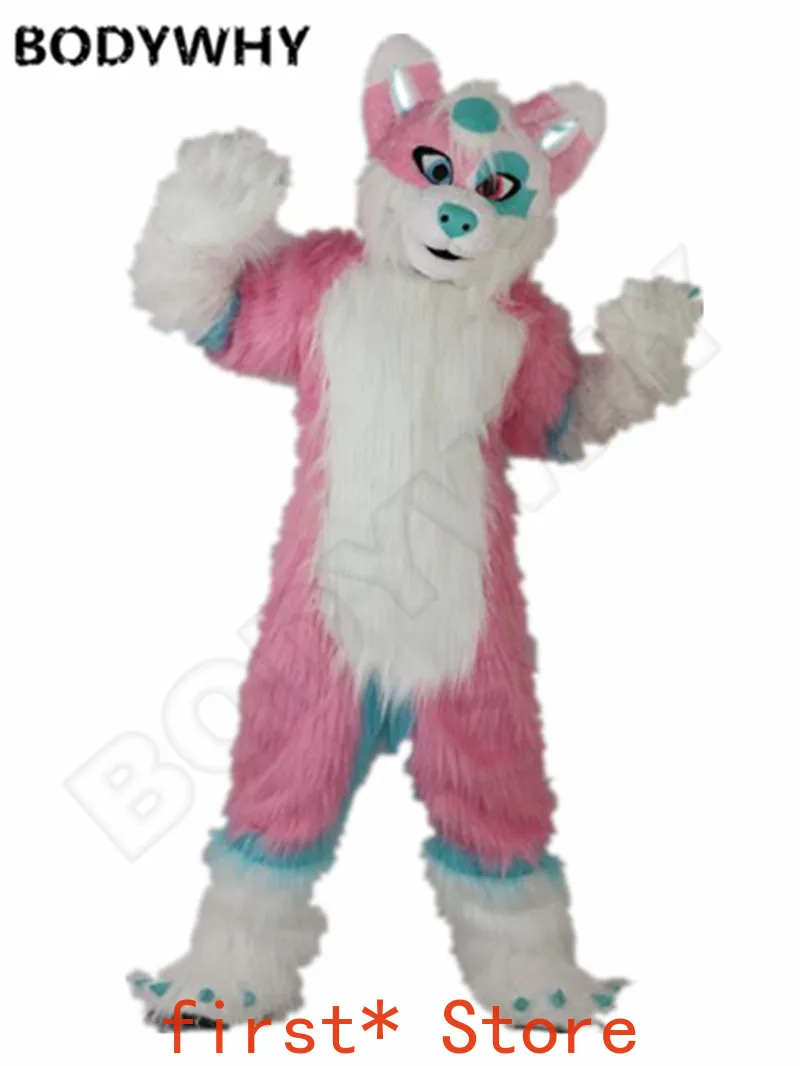 Special Offer Lange Fur Fox Roze Husky Hond Wolf Mascotte Fursuit Kostuum Kostuums Cosplay Unisex Verjaardag Jurk Volwassenen Halloween Kerst Karakter Discount 51% Today!