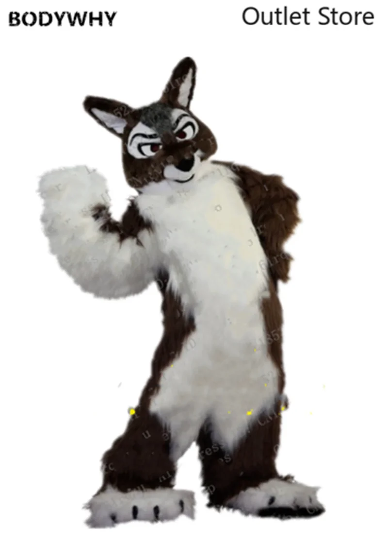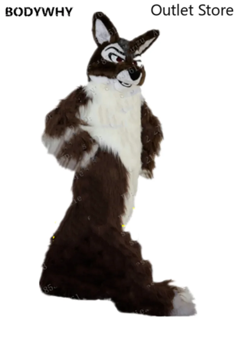 Special Offer Long Bont Husky Hond Vos Wolf Bruin Fursuit Mascotte Kostuum Cosplay Jurk Birthday Party Halloween Kerst Ad Opening Discount 51% Today!