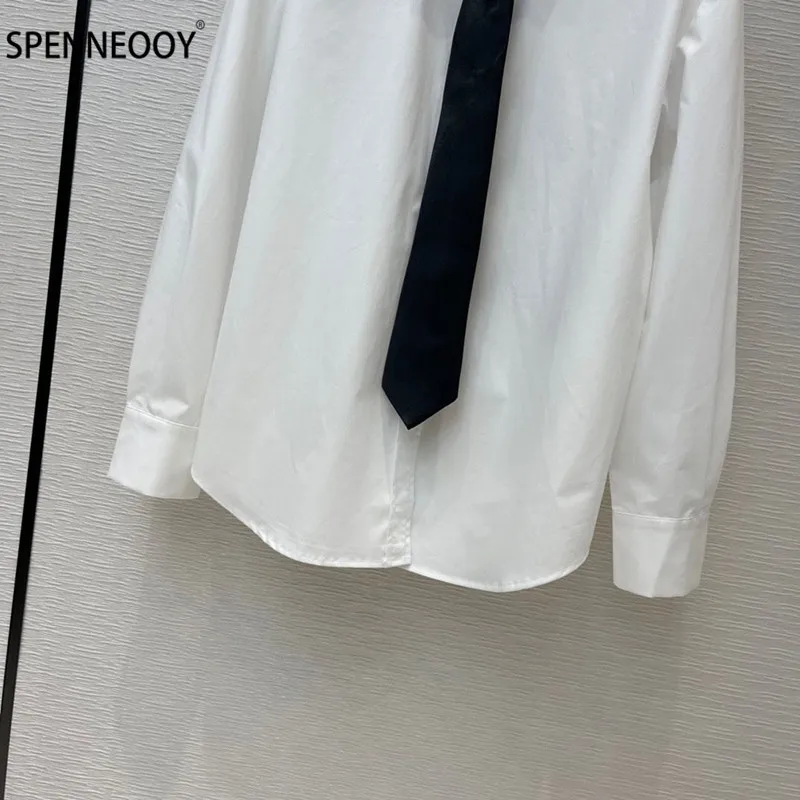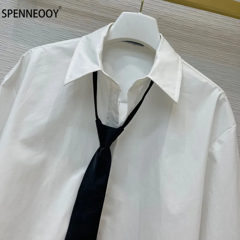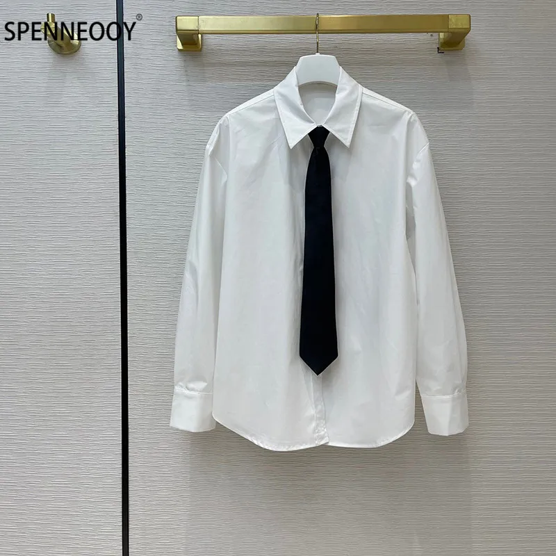 Product Name: Spennymoor 2021New Designer Merk Mode Witte Blouse Shirt Vrouwen Elegant Office Lady Blouses + Tie