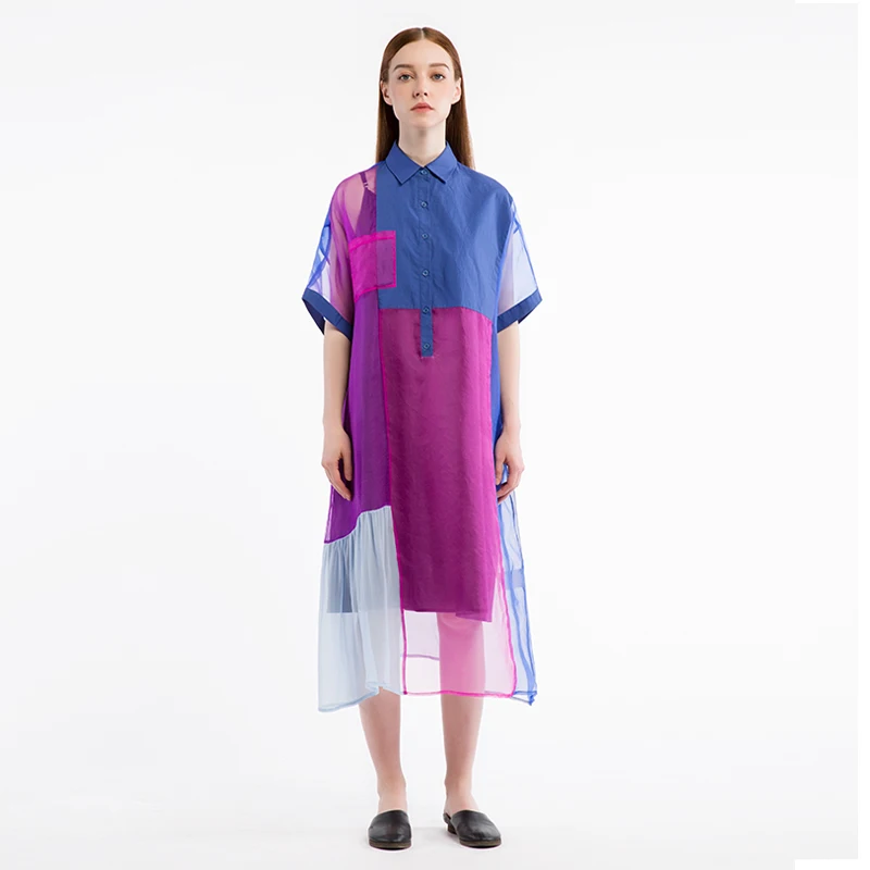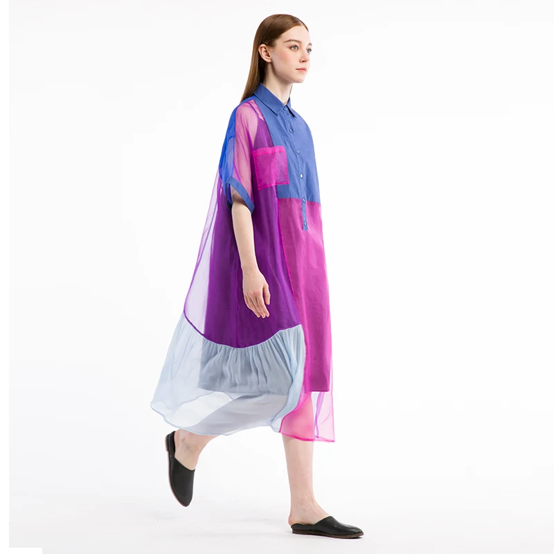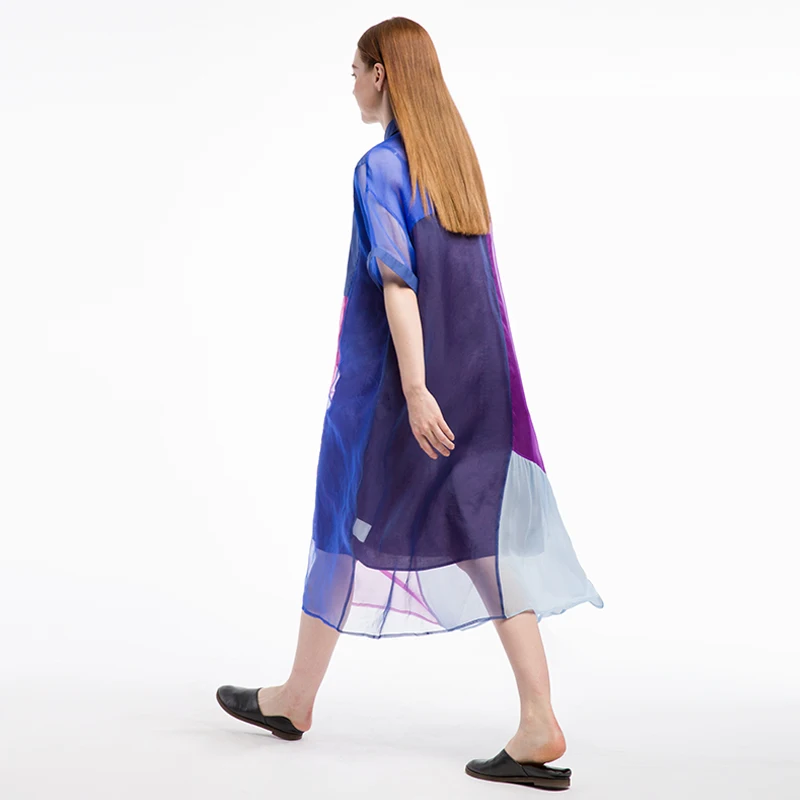 Special Offer Zomer Originele Ontwerp Vrouwen Nieuwe Oversized Shirt Casual Losse Zachte Ademend Zijde Midi Jurken Kleding Discount 81% Today!