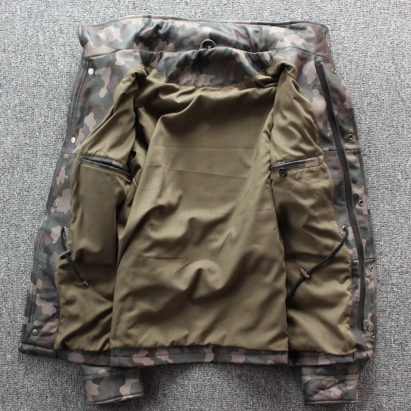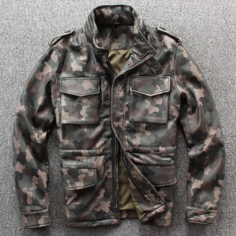 Special Offer Herfst Nieuwe Echte Mannen Safari M65 Camouflage Schapenvacht Lange Motorfiets Kleding Lederen Windjack Discount 90% Today!