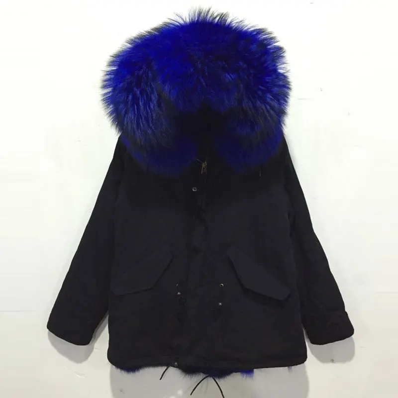 Product Name: Nieuwe Collectie Zwart Jasje Met Heldere Blauw Wolf Bont Jas Gratis Verzending Grote Kraag