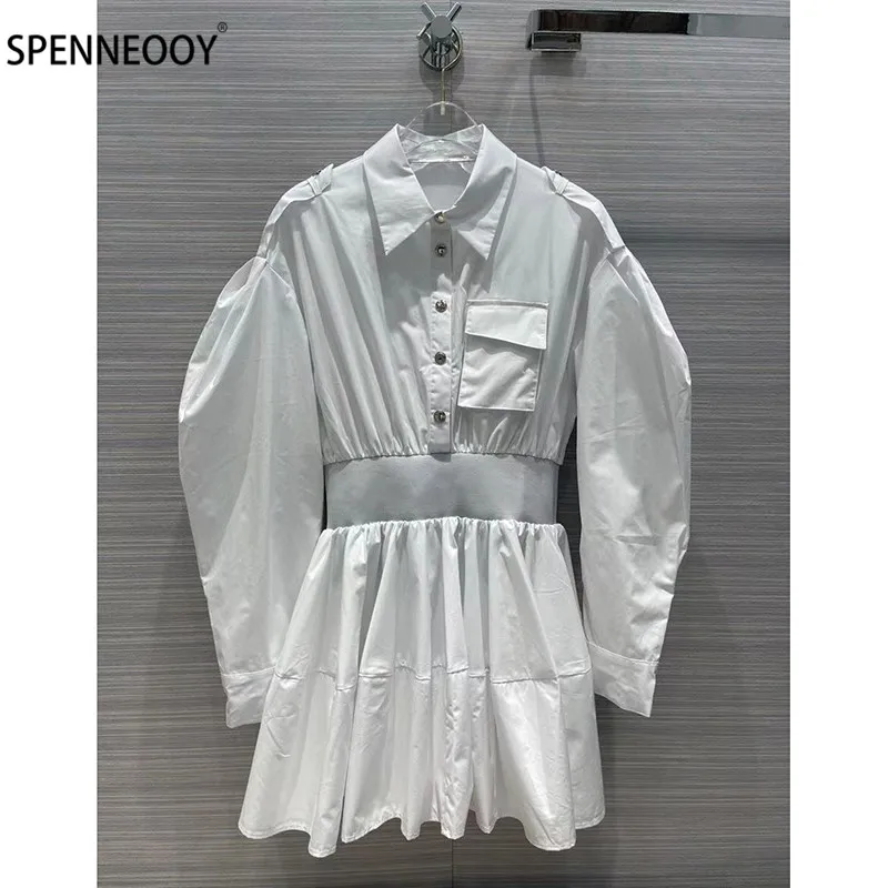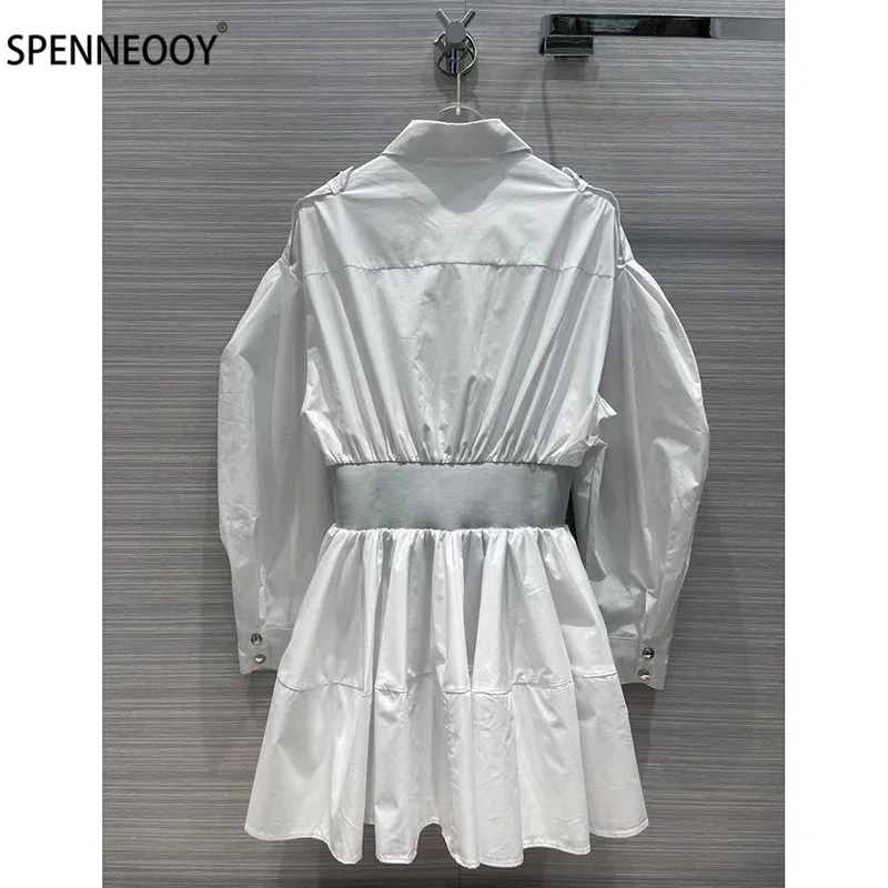 Product Name: Spennymoor 2021New Designer Merk Zomer Mode Witte Shirt Vrouwen Jurk Elastische Taille Bladerdeeg Mouw Mini Jurken