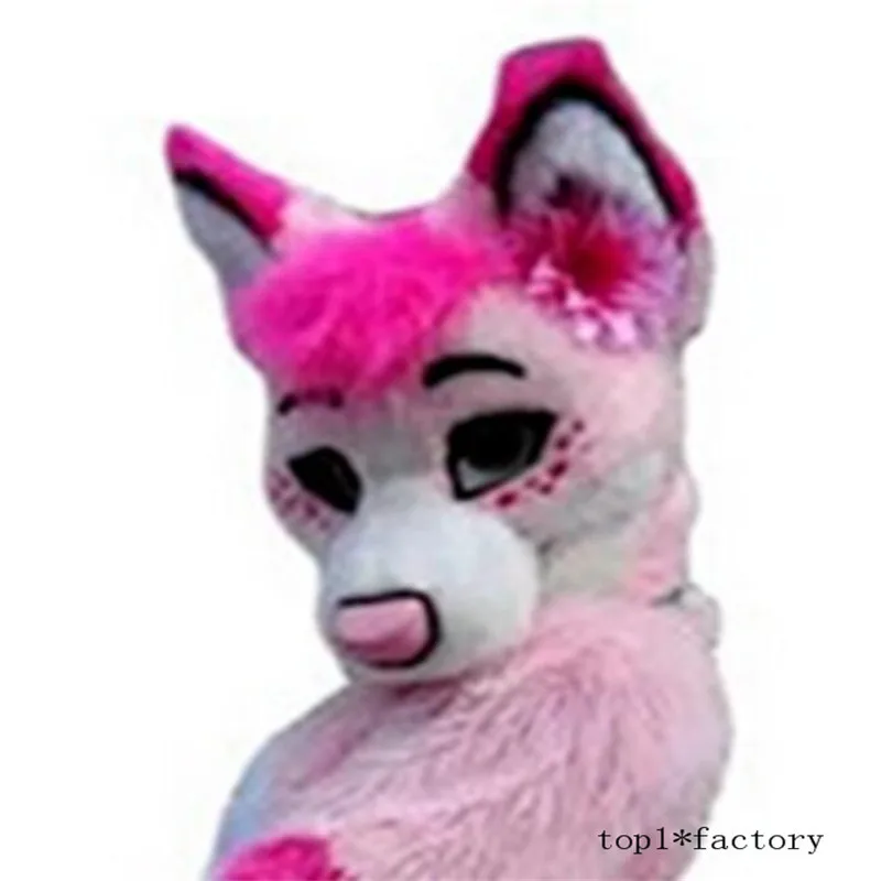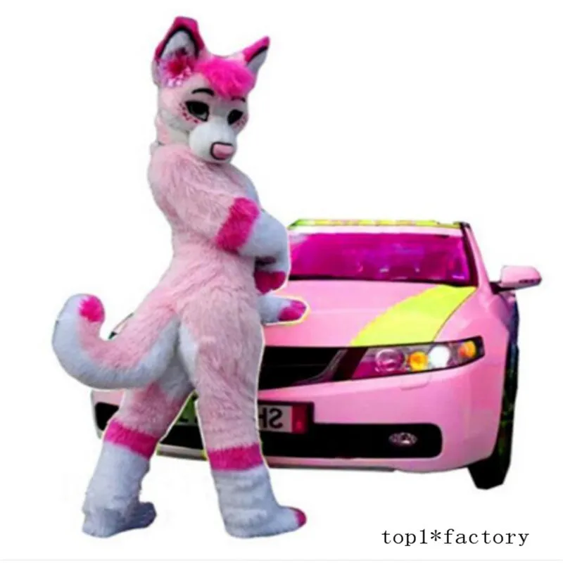 ๐(51%OFF) Kopen Goedkoop Halloween Carnaval Reclame Lange Bont Roze Husky Mascotte Kostuum Suits Wolf Vos Hond Cosplay Verjaardag Party Game Dress Volwassenen Ad Online